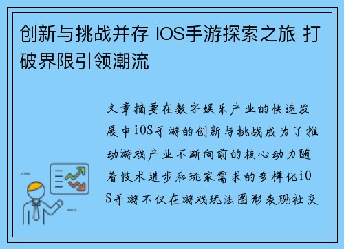 展望未来,J9国际平台将继续秉承创新与卓越的精神,深耕游戏产业,拓展更广阔的全球市场。公司将加大研发投入,积极探索虚拟现实、人工智能等前沿技术在游戏中的应用,为玩家呈现更加丰富多彩的游戏世界。同时,J9国际平台也将加强与全球顶尖游戏开发团队和平台的合作,不断提升自身的行业竞争力,努力成为全球游戏行业的引领者。